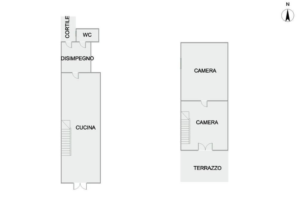 Proponiamo in vendita un appartamento con ingresso indipendente da strada, posto al piano terra e sviluppato su due livelli. Al primo livello si accede a un’ampia zona giorno open space, con disimpegno, un servizio finestrato e un piccolo cortile interno. Il secondo livello è dedicato alla zona notte, composta da due camere da letto.